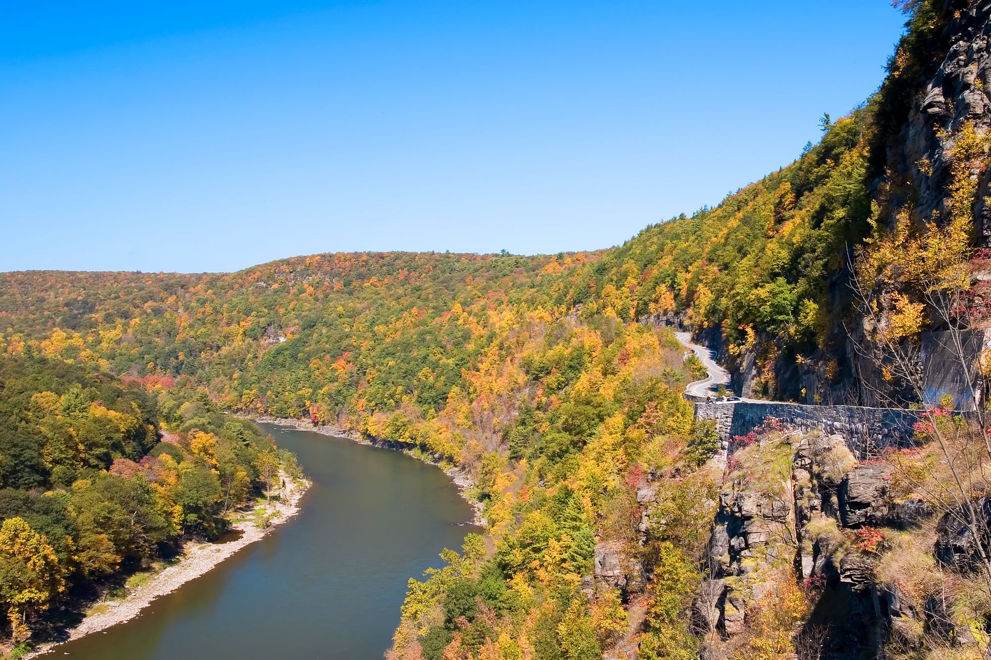 The crown jewel view on this winding hillside byway is the famous Hawks Nest (above), which provides a wide-angle lookout from high above the Delaware River. The route stretches the length of the northeast border of Pennsylvania and is dotted with historic towns, museums, and natural attractions such as Crystal Bouchoux Trail. If you pick the right weekend for your trip, expect the full palate of fall colors — bright reds, oranges, and yellows with some lingering green mixed in.